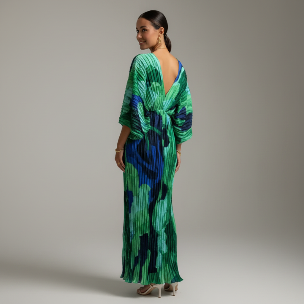 Bold Printed Design: The eye-catching print elevates the dress, making it a standout piece for any occasion, from parties to formal gatherings.