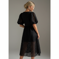 This is our Sheer Grid Puff Sleeve Midi Dress
