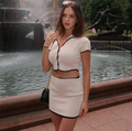 This is our Short Sleeve Button Top and Mini Skirt Set