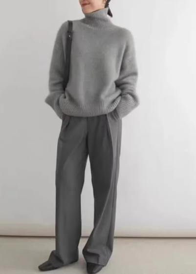 Classic Turtleneck Design: The high-neck design adds an extra layer of warmth while exuding a polished, modern look.