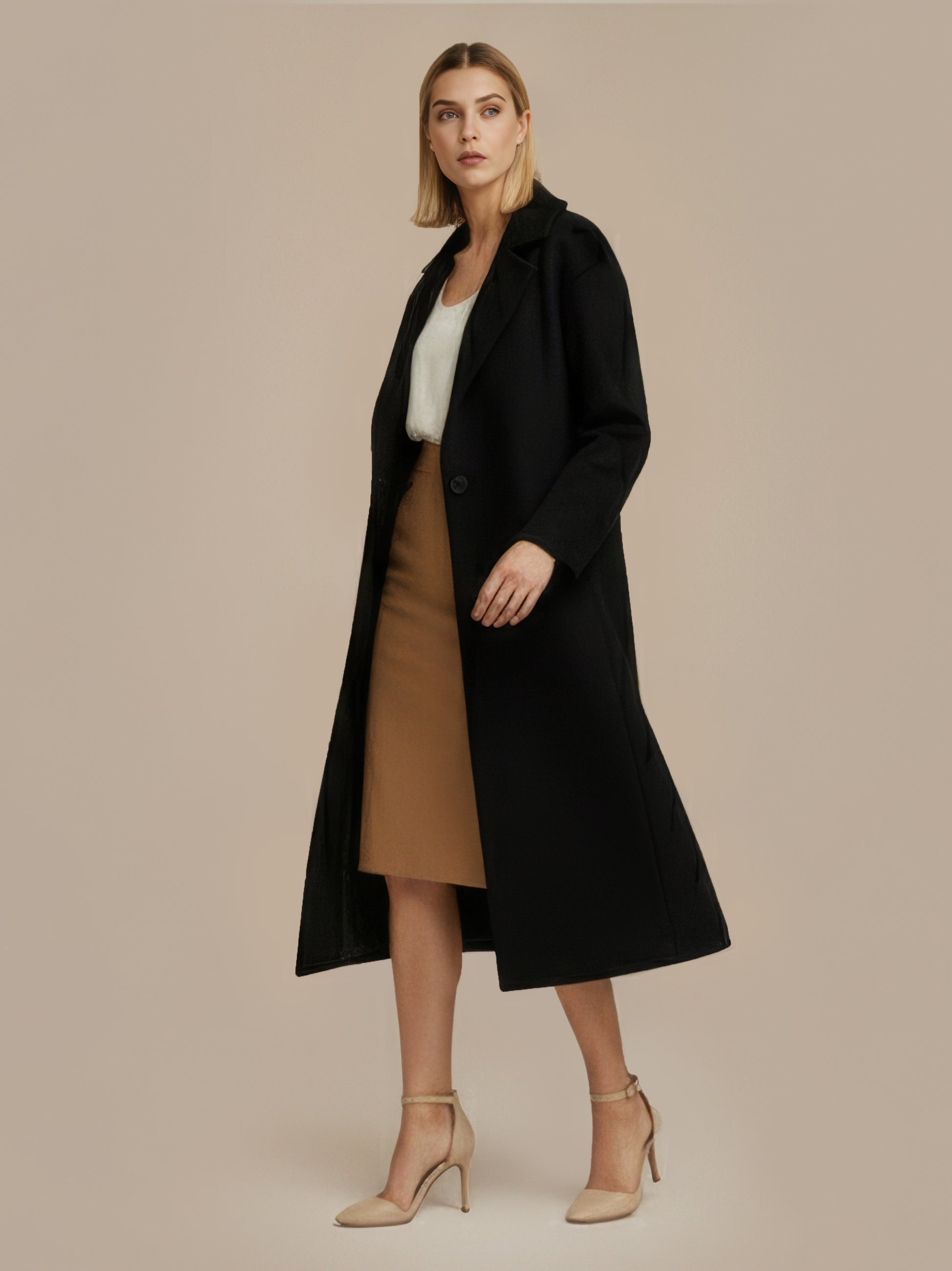 Pair the Sitti Classic Coat with a cozy sweater and tailored trousers for a refined look, or throw it over jeans and a turtleneck for a chic, everyday outfit.