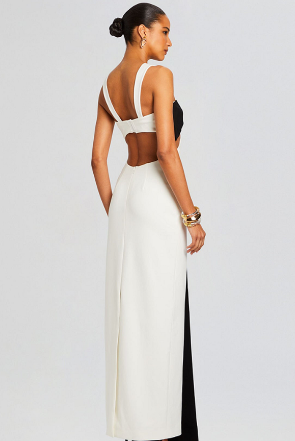 This is our Sleek Colorblock Cutout Maxi Dress