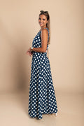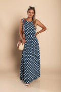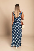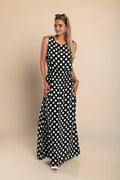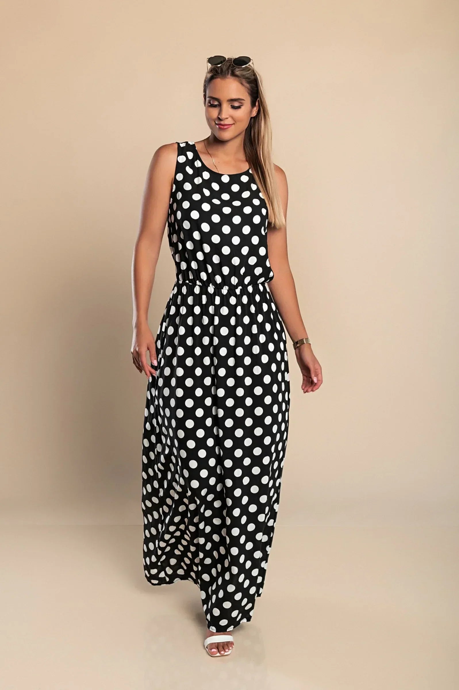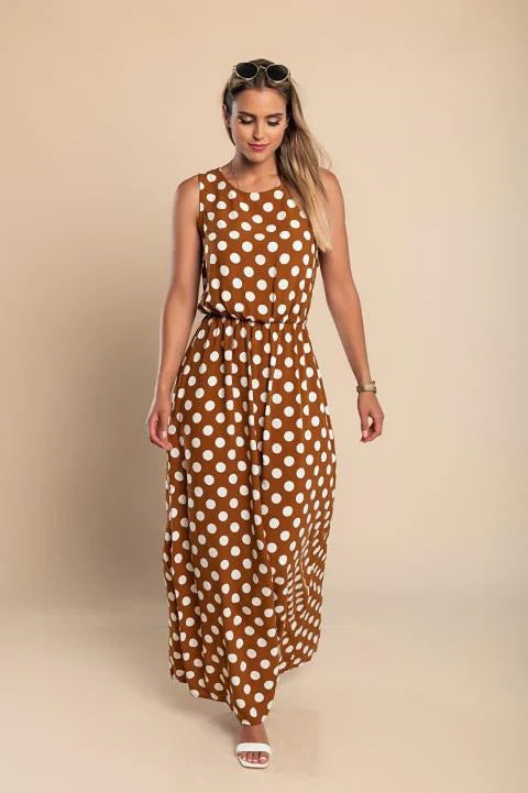 A playful yet timeless sleeveless maxi dress featuring a classic polka dot print and a softly gathered waistline for a flattering fit. Designed for relaxed summer days, it flows effortlessly with every step.