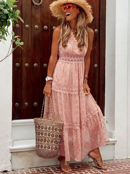 This enchanting dress combines bohemian charm with delicate lace details, creating a look that's effortlessly chic and perfect for any occasion.