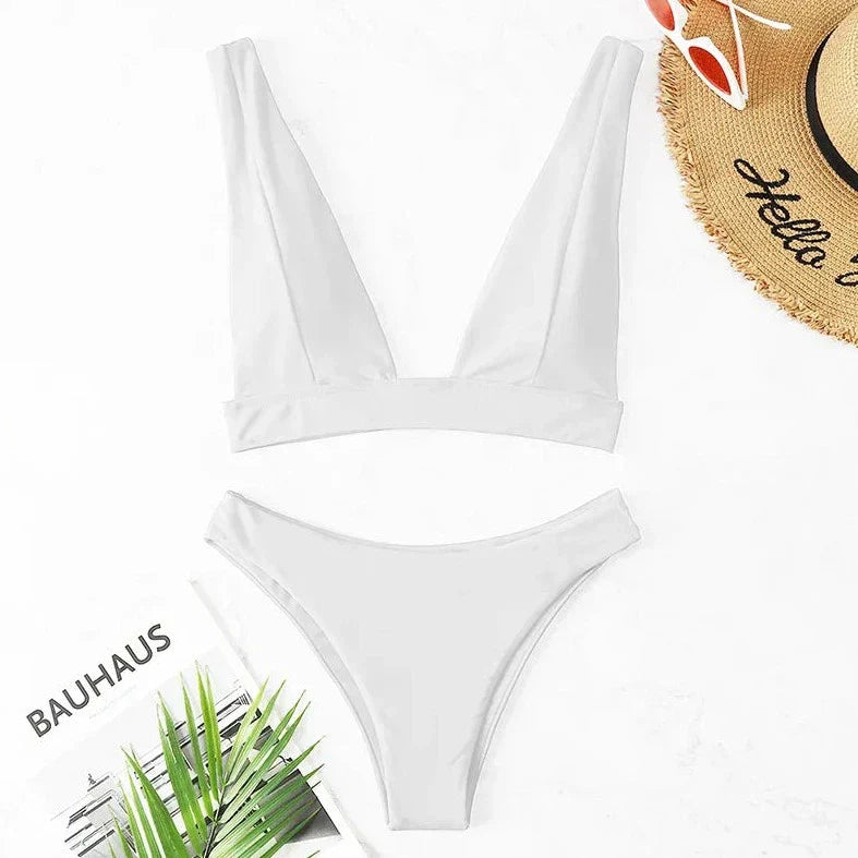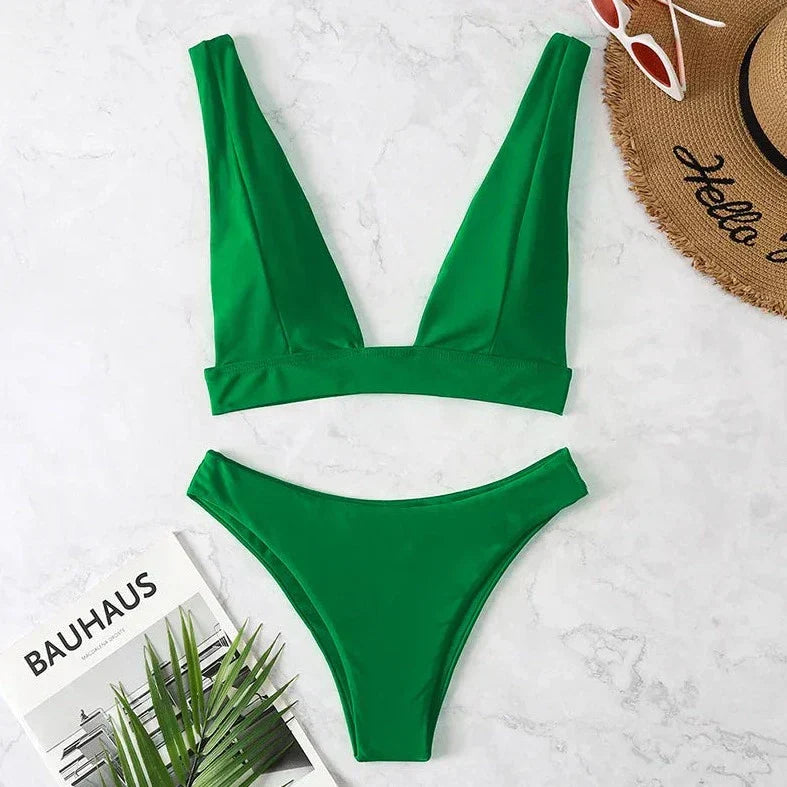 This is our Solid Color 2 Piece Plunge Swimsuit