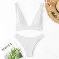 A sleek and stylish swimwear option that is perfect for your next beach or pool day. This swimsuit features a classic two-piece design with a plunging neckline, creating a chic and sophisticated look. Here are the key features and benefits of this swimsuit: