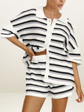 Striped Short Sleeve Button Shirt and High-Waisted Shorts Set