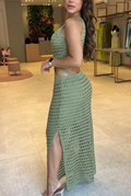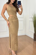 A bold expression of effortless charm — textured knit meets statement cutouts for a standout vacation look.