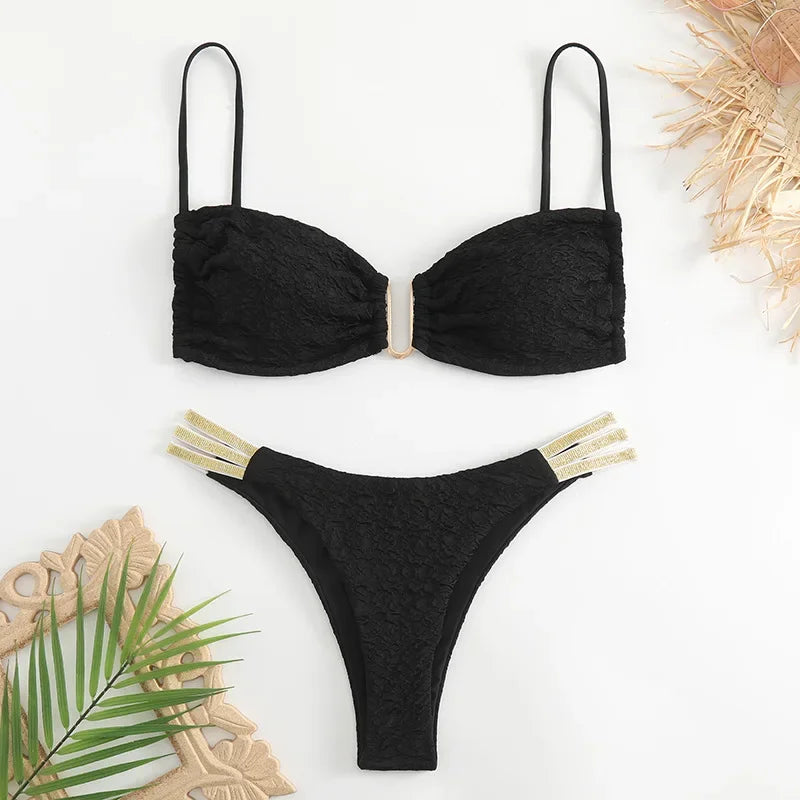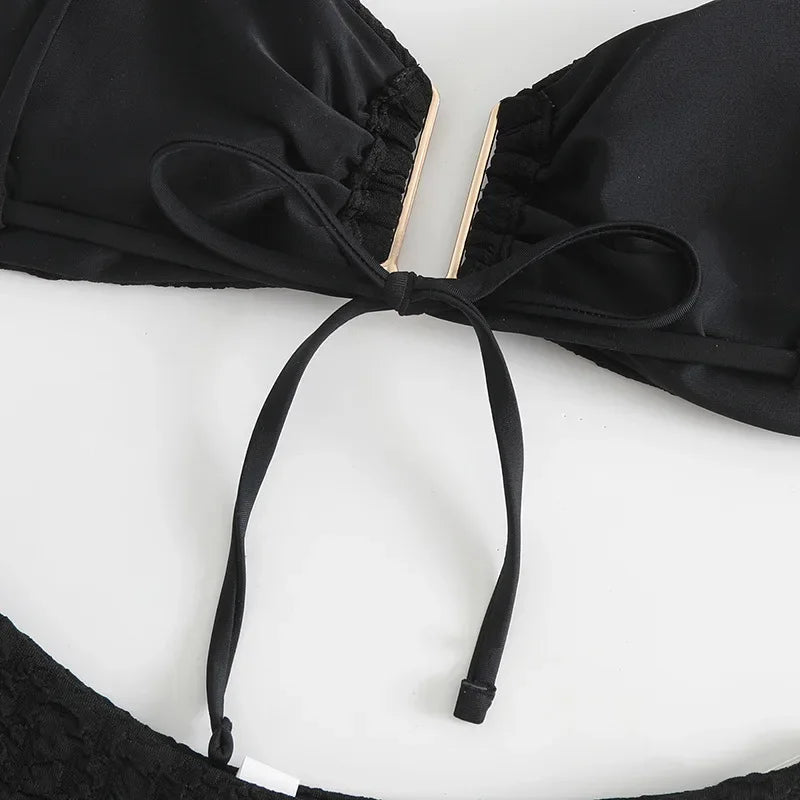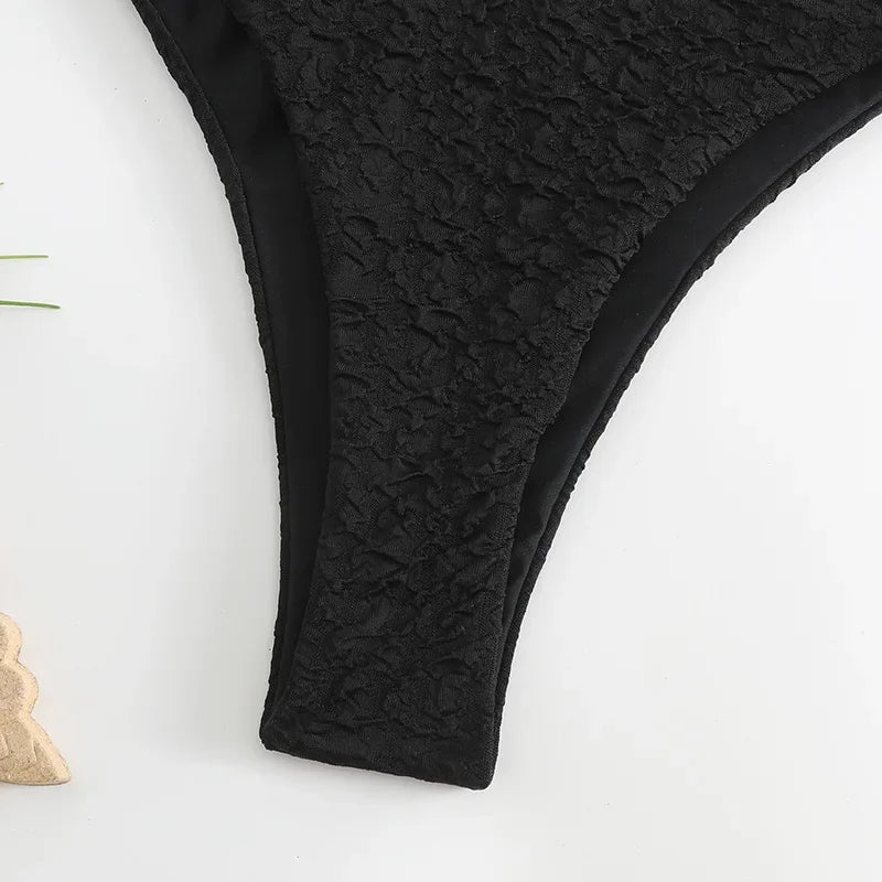 A chic and sophisticated swimwear option that is perfect for your next beach or pool day. This bikini features a textured fabric that adds a touch of elegance to your swimwear look. Here are the key features and benefits of this bikini: