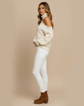 Elegant Off-Shoulder Design: The Trina Sweater features a stylish off-shoulder neckline that adds a flirty, fashionable touch while maintaining a comfortable, relaxed fit.
