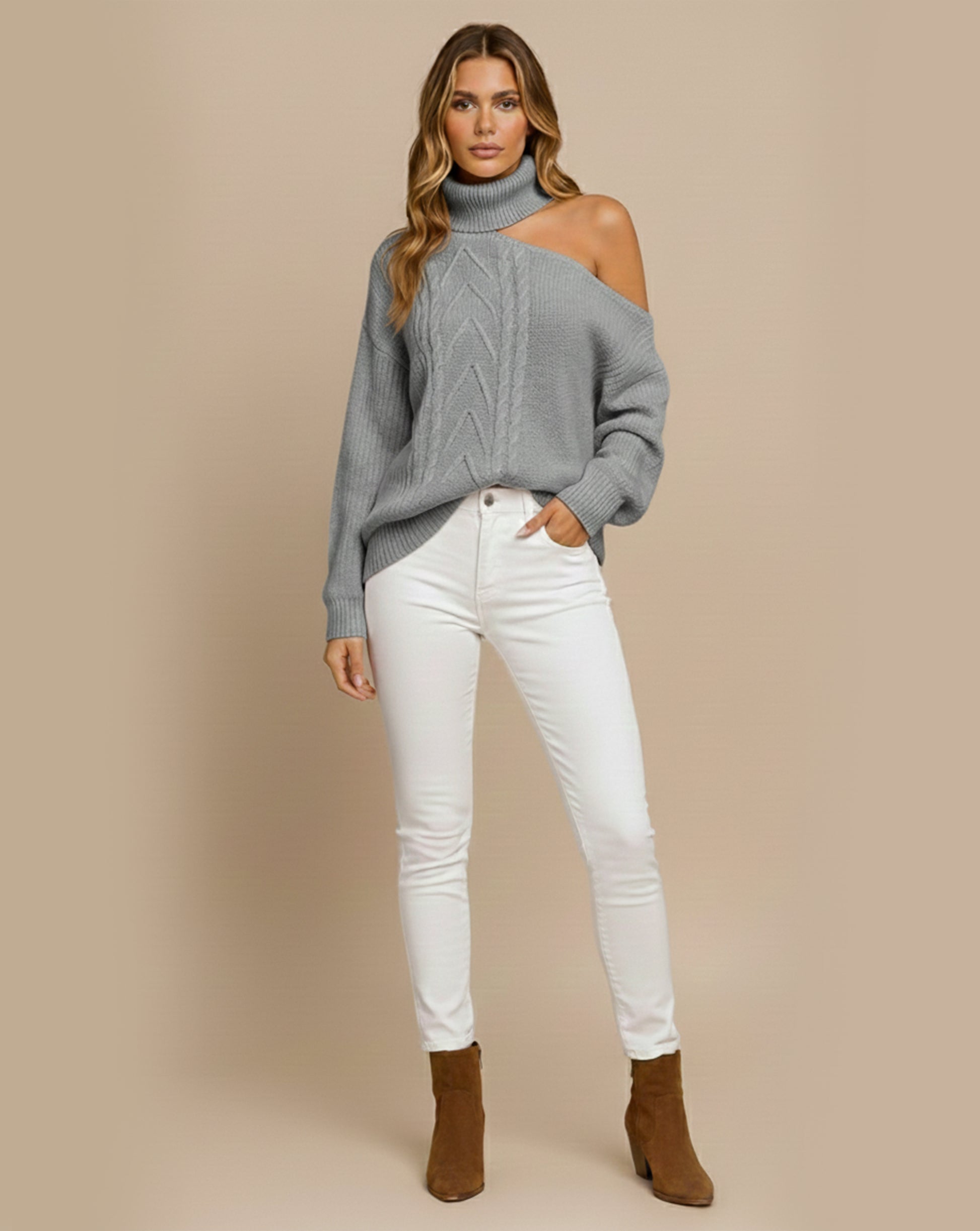 Versatile Styling: Its unique design and neutral color options make the Trina Sweater a versatile piece that pairs effortlessly with jeans, skirts, or leggings, suitable for various occasions.