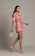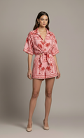 This is our Tropical Print Short Sleeve Button-Up Shirt and High-Waisted Shorts Set