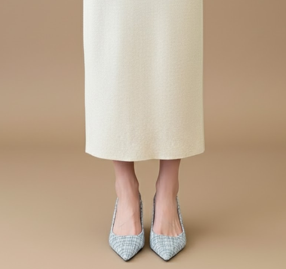 • Detail: Available in Black Tweed, Baby Blue, and Beige; sizes 35–42