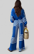 A chic two-piece ensemble featuring a long sleeve top with a twist front detail and deep V-neckline, paired with high-waisted wide leg pants. Made from a soft, breathable fabric with a draped silhouette for elevated comfort. A modern coord that blends statement style with minimal ease.