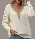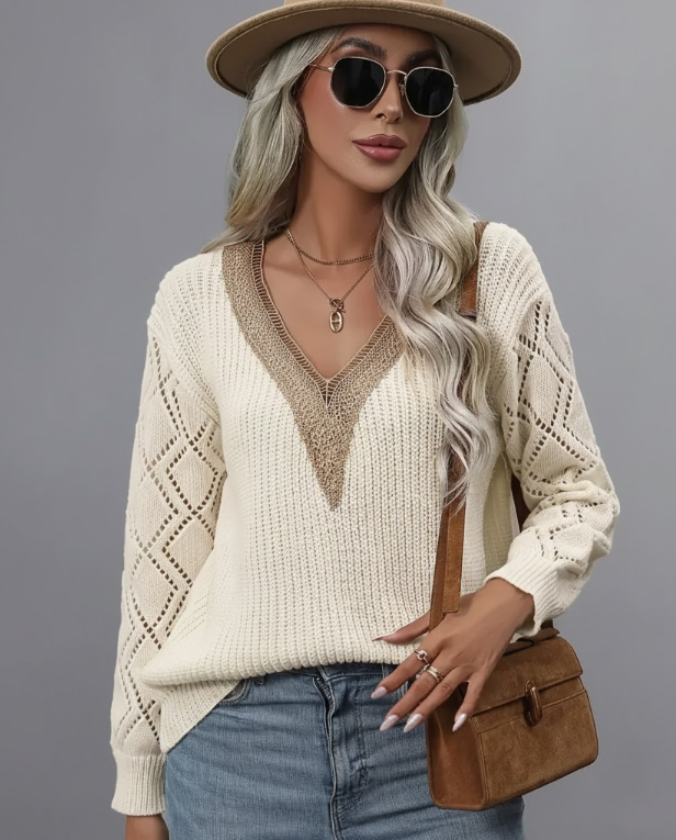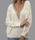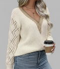 Flattering V-Neck Design: The V-neckline adds a touch of elegance to the sweater, enhancing its versatility and making it suitable for various occasions.