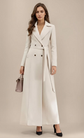 Double-Breasted Design: A timeless trench style that exudes elegance and polish.