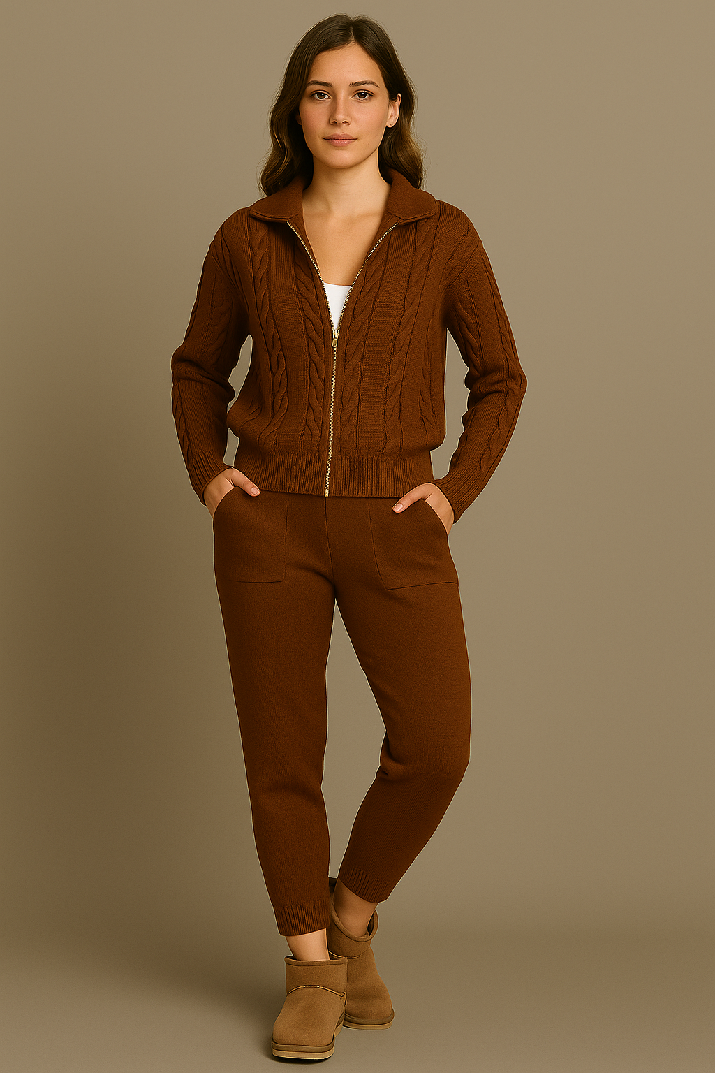 Indulge in luxurious comfort with the Vivian Cosy Two Piece Set. Whether you're enjoying a cozy night in or stepping out for a quick coffee run, this set ensures you stay warm, stylish, and effortlessly comfortable wherever you go.