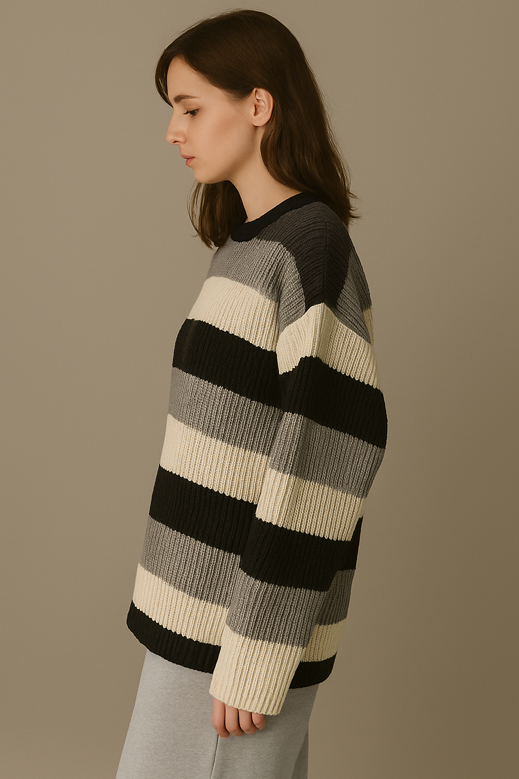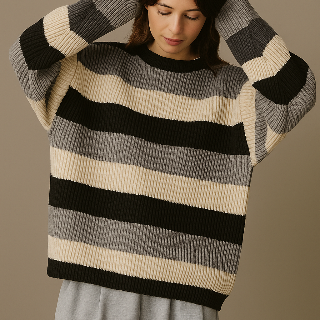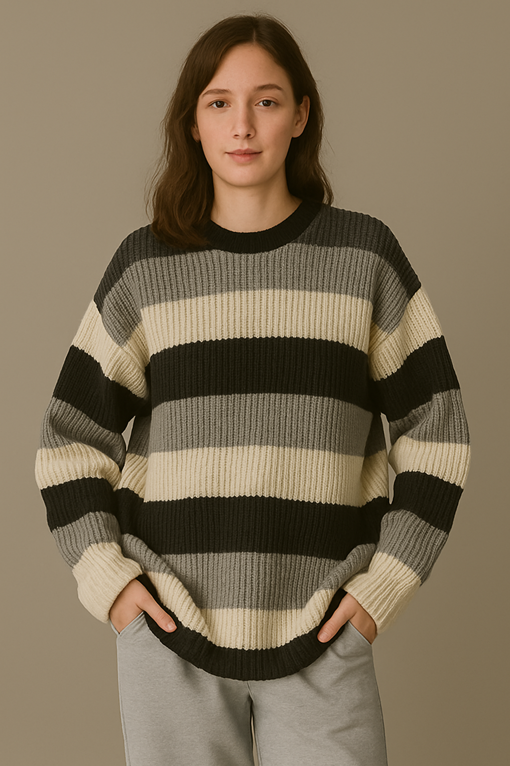 Chic Striped Design: Featuring a timeless striped pattern, this pullover adds a touch of classic style to your wardrobe, perfect for both casual and semi-formal occasions.