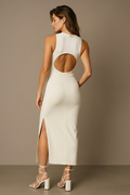 Elevate your wardrobe with our White Crystal Blossom Cut-Out Dress, a blend of sophistication and comfort