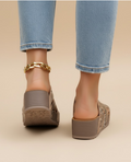 Perfect with jeans, maxi dresses, or summer sets — these sandals bring texture and lift to every look.