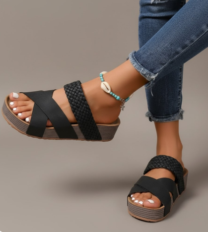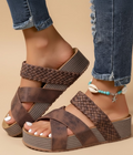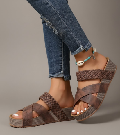 Earthy, elevated, and made to move. The Woven Platform Slide Sandals feature thick criss-cross straps with a woven finish, a chunky platform sole, and an easy slip-on fit that makes every step feel grounded and stylish.