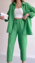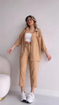 A chic and versatile ensemble designed for effortless style and sophistication. This set features a long-sleeved top paired with coordinating bottoms, offering a polished look suitable for a variety of occasions.