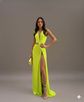 High Slit: The dramatic high slit enhances your legs, offering a sultry and stylish look that’s sure to turn heads.