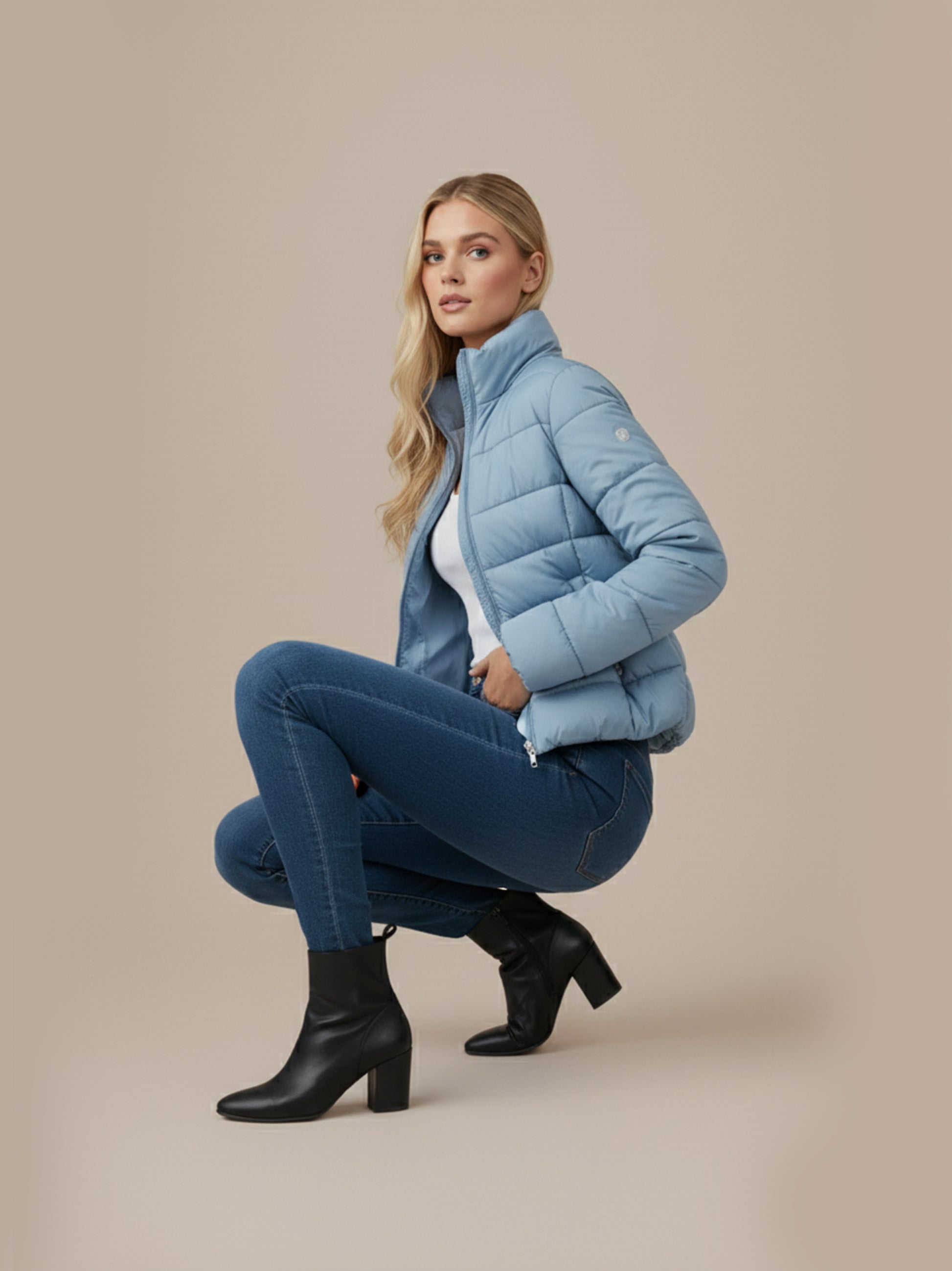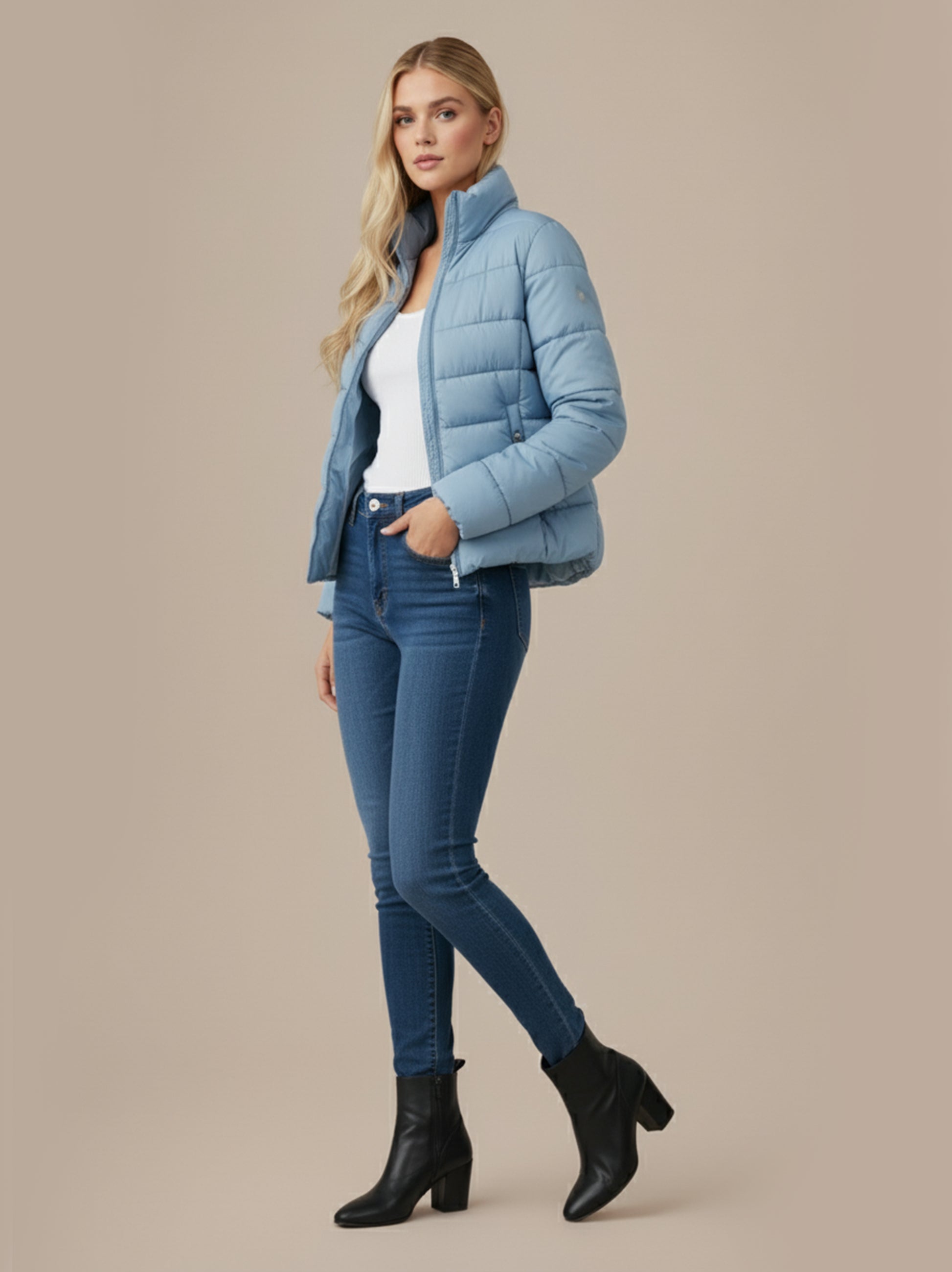 The ultimate cold-weather essential, combining functionality, warmth, and style in one sleek design. With its cozy turtleneck collar and insulated puffer material, this jacket is perfect for braving chilly days while keeping your look effortlessly chic.
