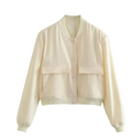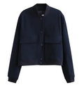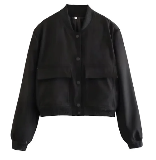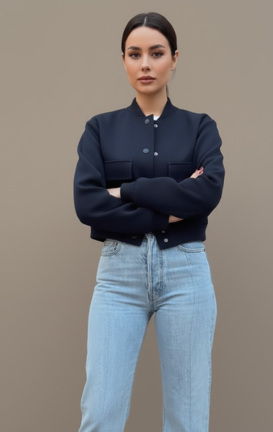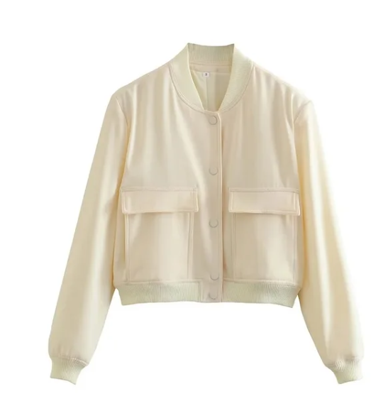A stylish and versatile outerwear piece designed to add a trendy edge to your wardrobe. This cropped bomber jacket features practical pockets and a modern silhouette, making it the perfect blend of fashion and functionality for any occasion.