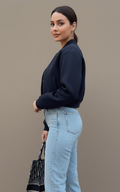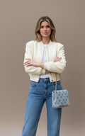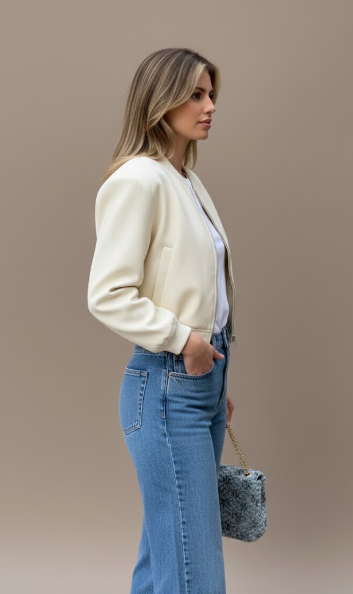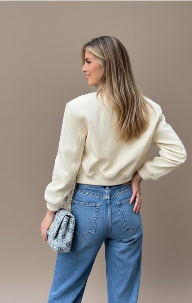 Cropped Silhouette: The Zora Bomber Jacket boasts a cropped silhouette that adds a contemporary twist to the classic bomber style. This shorter length offers a modern and flattering look, perfect for pairing with high-waisted bottoms or layering over dresses.