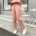 A cozy and stylish ensemble designed for effortless comfort and chic appeal. This coordinated set features knitted pants paired with a matching long sleeve top, crafted from soft and luxurious fabric for a warm and fashionable look.