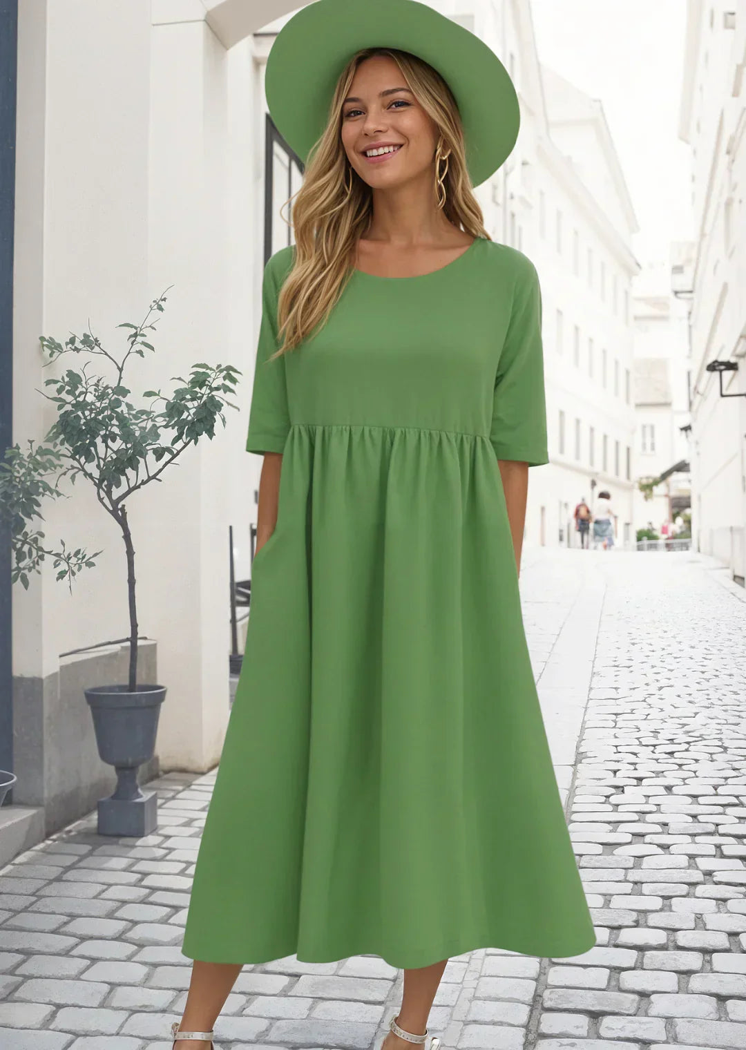 Elevate your everyday style with the Chesca Midi Dress, the ultimate choice for chic comfort and timeless elegance.