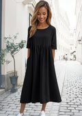 Chic Half Sleeves: The stylish half sleeves add a touch of sophistication and allow for ease of movement, making this dress perfect for transitional weather.