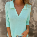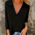 • Feminine V-neck with collar for an elevated, flattering touch