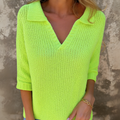 Detail: Crocheted pattern, V-neckline with collar, 3/4 sleeves