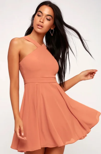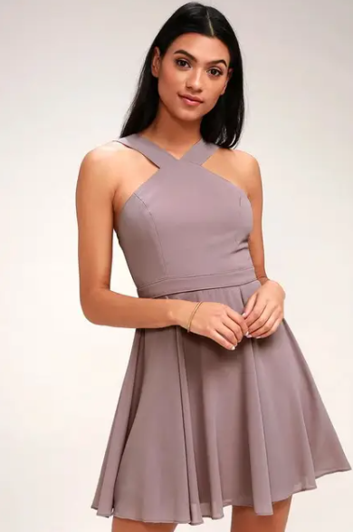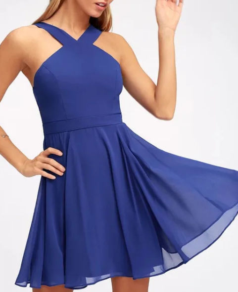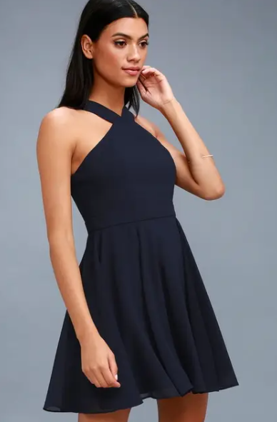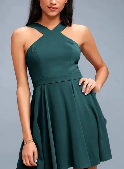 This is our Cross Halter Fit and Flare Dress