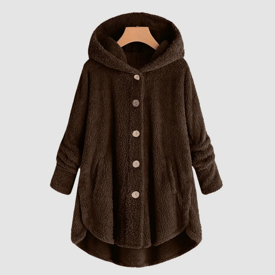 Embrace cozy sophistication with the Ellen Plush Jacket, made from soft polyester. Featuring a hood and button-down front, this jacket is designed to keep you warm while adding a touch of elegance to your winter wardrobe.