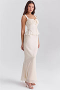 A perfect blend of sophistication and contemporary style. This set, featuring a long skirt and a sleeveless top, is designed to make you look effortlessly chic and elegant for any occasion.
