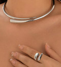 With a sculptural water drop design and open torques structure, this matching choker and bracelet set strikes the perfect balance between artful and edgy. Designed for bold, expressive styling, it's a statement in modern minimalism with a gothic twist.
