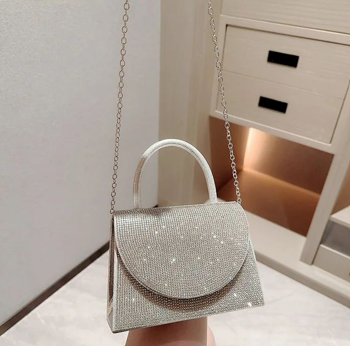 Sparkling Rhinestones: The handbag is embellished with dazzling rhinestones, adding a glamorous touch that catches the light beautifully.