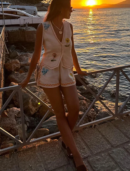 Versatile Styling Options: Whether paired with a flowing skirt for a romantic appeal or layered over a blouse and trousers for a polished ensemble, the Lulu Floral Embroidery Vest Set offers endless possibilities for chic styling.