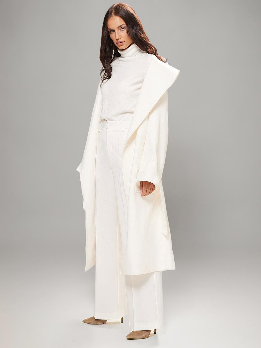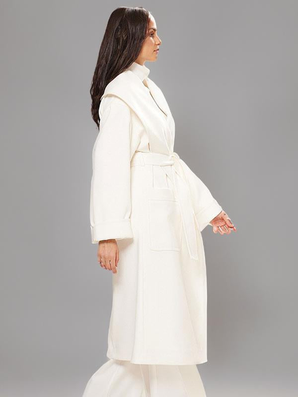 Step out in style with the Maddy White Longline Overcoat, an essential addition to any fashion-forward wardrobe for effortless elegance.