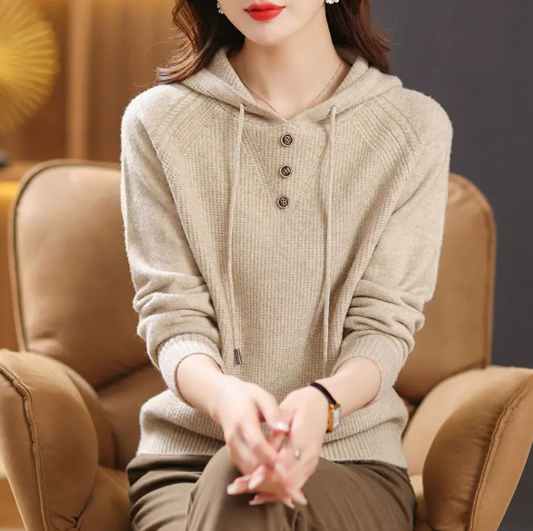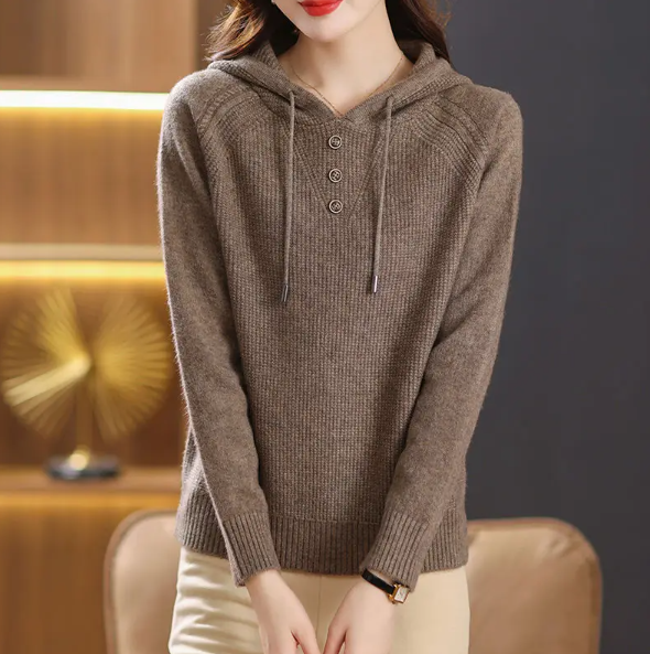 Versatile Layering: Whether worn as a standalone piece or layered over a shirt or under a jacket, the Nova Knitted Hooded Sweater offers endless styling possibilities for creating chic and fashionable outfits.