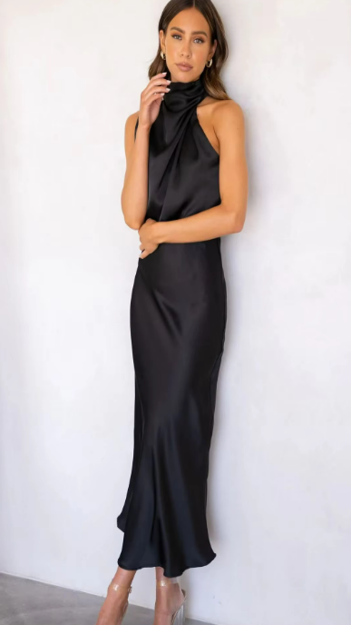This is our One-Shoulder Drape Midi Slip