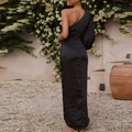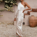 One-Shoulder Satin Tie Dress