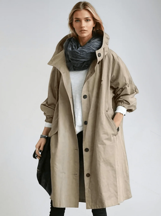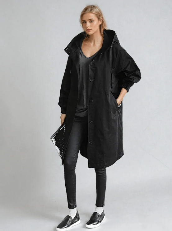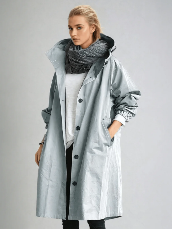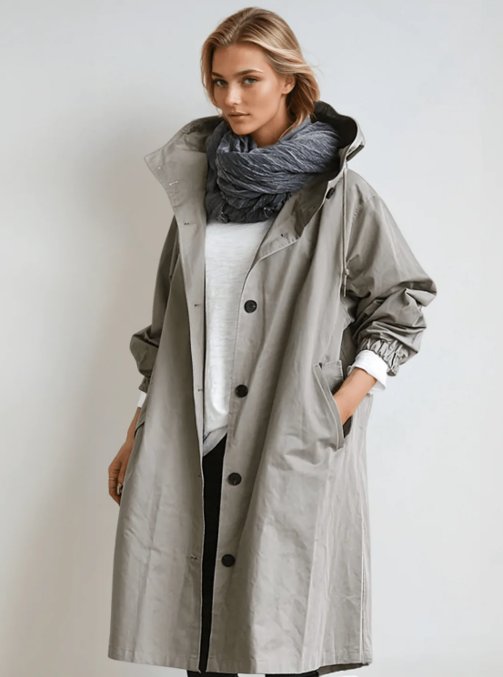 Oversized Button-Up Hooded Trench