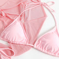 A chic and versatile swimwear ensemble that is perfect for your next beach or pool day. This set includes a bikini top, bikini bottom, and two cover-up pieces, all in a beautiful pink color. Here are the key features and benefits of this bikini set: