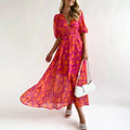 Romantic, radiant, and made to twirl — this statement maxi dress brings bold color and drama in every step.