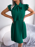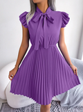Chic, flirty, and irresistibly flowy — this mini dress brings feminine charm to every twirl with its pleated texture and graceful tie-neck detail.