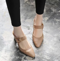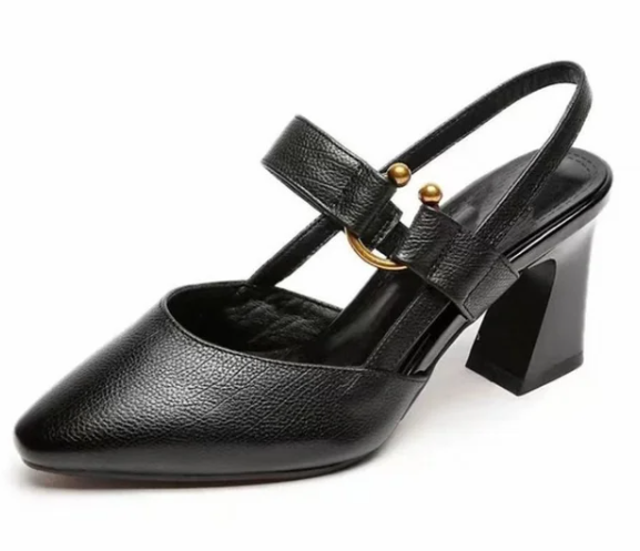 Sophisticated with a dash of edge—these slingback heels elevate any outfit with their golden charm.